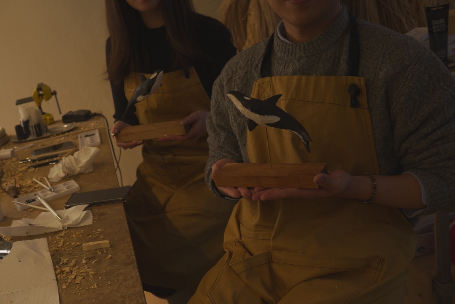 나무를 조각칼로 하나하나 깎아내며, 작지만 생동감 있는 고래를 완성해보는 원데이 클래스입니다.