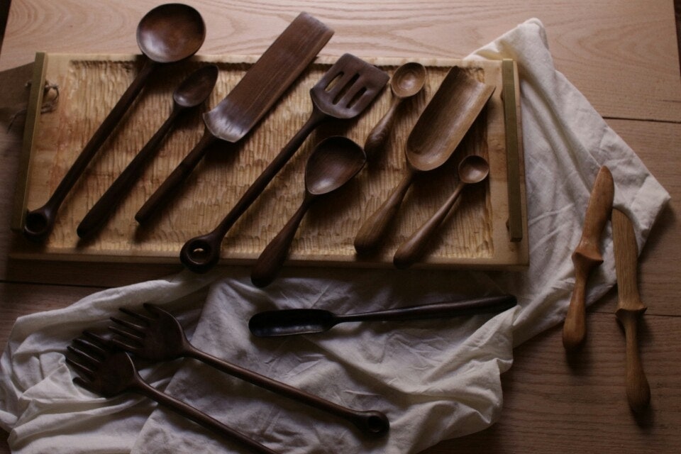 다양한 수종과 형태로 제작되 나무 숟가락과 집게 은 각기 다른 매력을 지니고 있습니다. 예들들어 ,단품나무와 호두나무로 만든 숟가락은